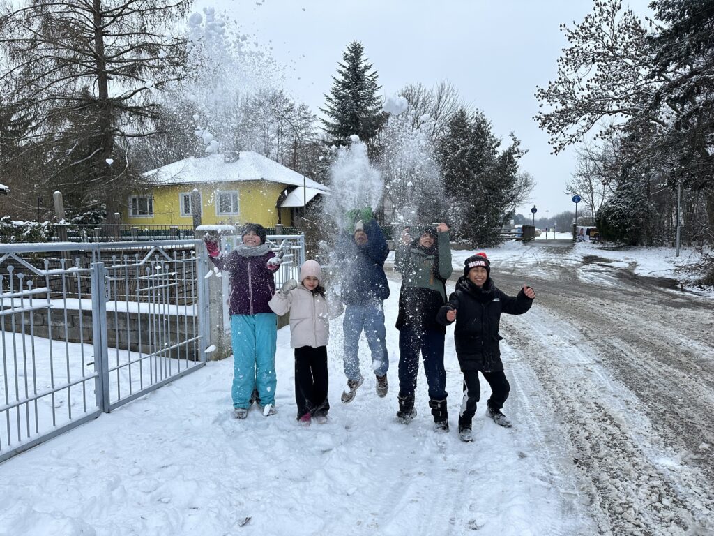Endlich Schnee! Die Kinder genossen es am Nachmittag im Schnee zu spielen.