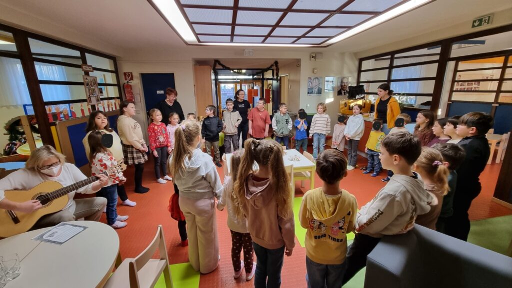 Unsere dritte Klasse durfte am 22. Dezember einen Besuch im Kindergarten machen. Nach einer tollen Adventgeschichte, begleiteten die großen Kinder ihre zukünftigen „Buddies“ durch eine Lichterspirale und durften ihnen vorlesen. Nach gemeinsamer Jause mit Tee und Keksen, machten wir Musik und erzählten eine selbst erfundene Geschichte. Der Besuch hat allen viel Spaß gemacht.