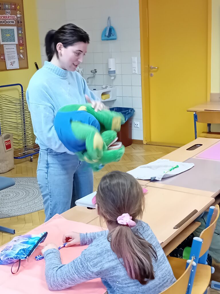 Auch im zweiten Semester besuchte uns die Zahngesundheitserziehung mit Apollonia. Es wurde wieder viel Neues gelernt und erfahren.