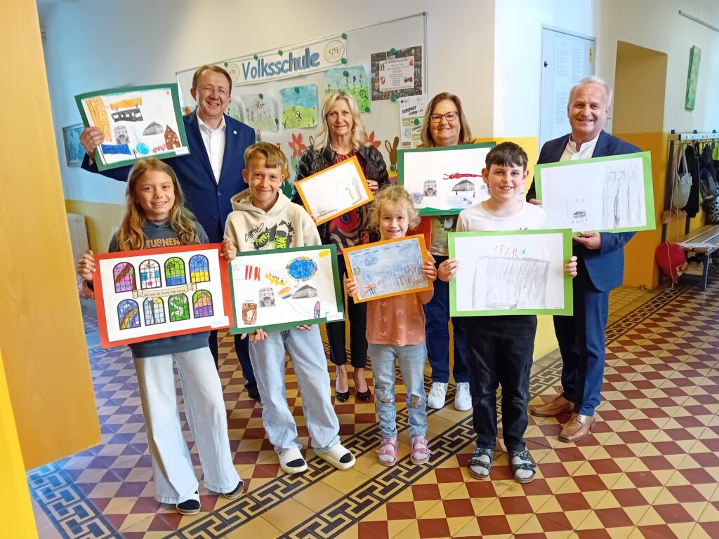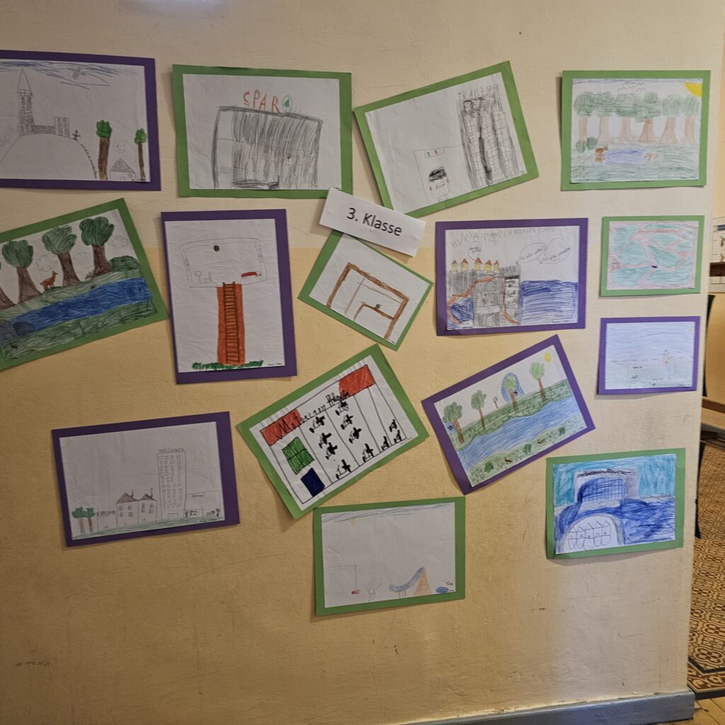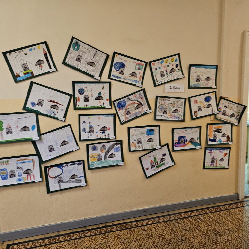 Für eine Ausstellung, die die Zukunftswerkstatt Harland begleitete, malten unsere Schüler fleißig Bilder zum Thema „Wie ich mir Harland wünsche“. Als Belohnung gab es von unserem Herrn Bürgermeister Eintrittskarten für das Kinderkunstlabor.