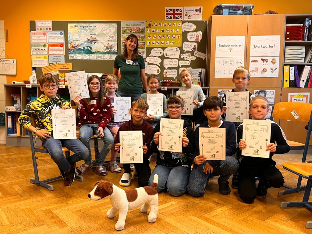 Am 15.Oktober besuchten „der Hund Pumba“ und Fr. Michaela Lechner vom Verein „Tierschutz mach Schule“ die 3. und 4. Klasse. Gerade weil täglich unzählige Kontakte zwischen Hunden und Menschen stattfinden, ist der richtige Umgang mit den Vierbeinern und das harmonische Zusammenleben von großer Bedeutung.
