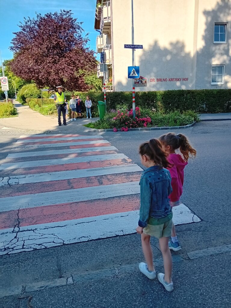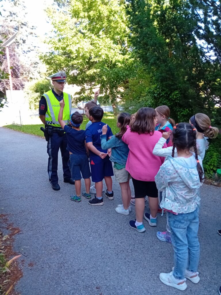 Kurz vor den Somerferien besuchte uns noch einmal die Polizei um einen zusätzlichen Beitrag zur Verkehrserziehung zu leisten.