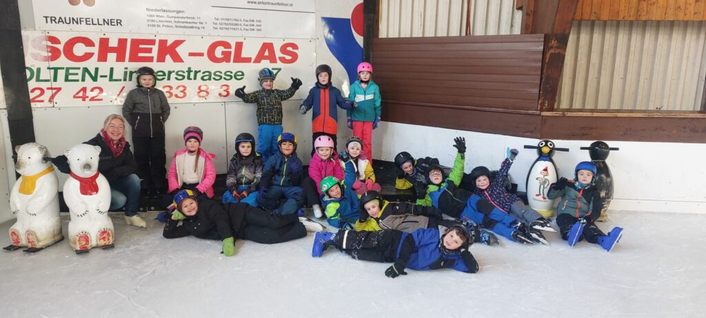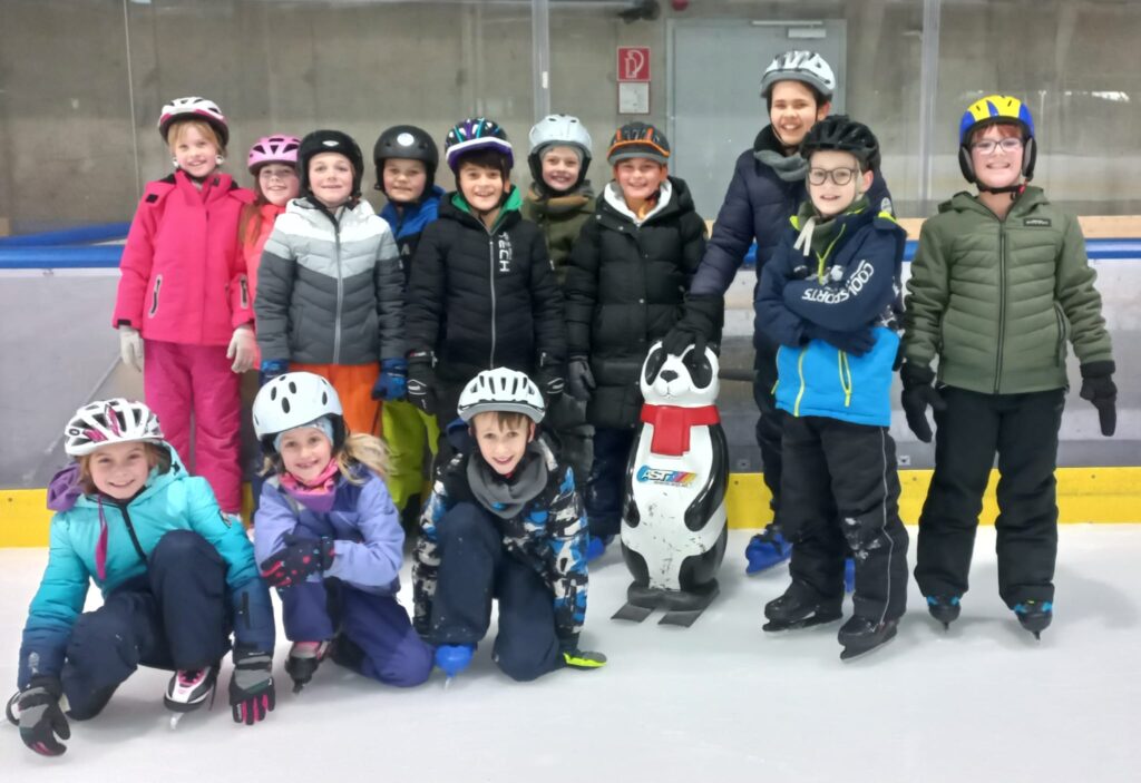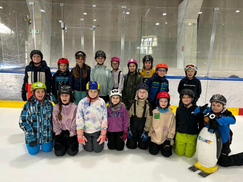 Die dritte und vierte Klasse verbrachte eine tolle Sporteinheit in der Eishalle und übte sich im Eislaufen.