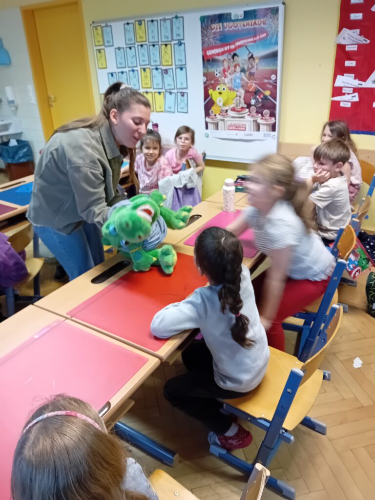 Auch im zweiten Semester fand die Zahngesundheitserziehung in unserem Haus statt. Die Erstklässler freuten sich sehr über den Besuch des Krokos. Genauso fleißig beteiligten sich die anderen Klassen.