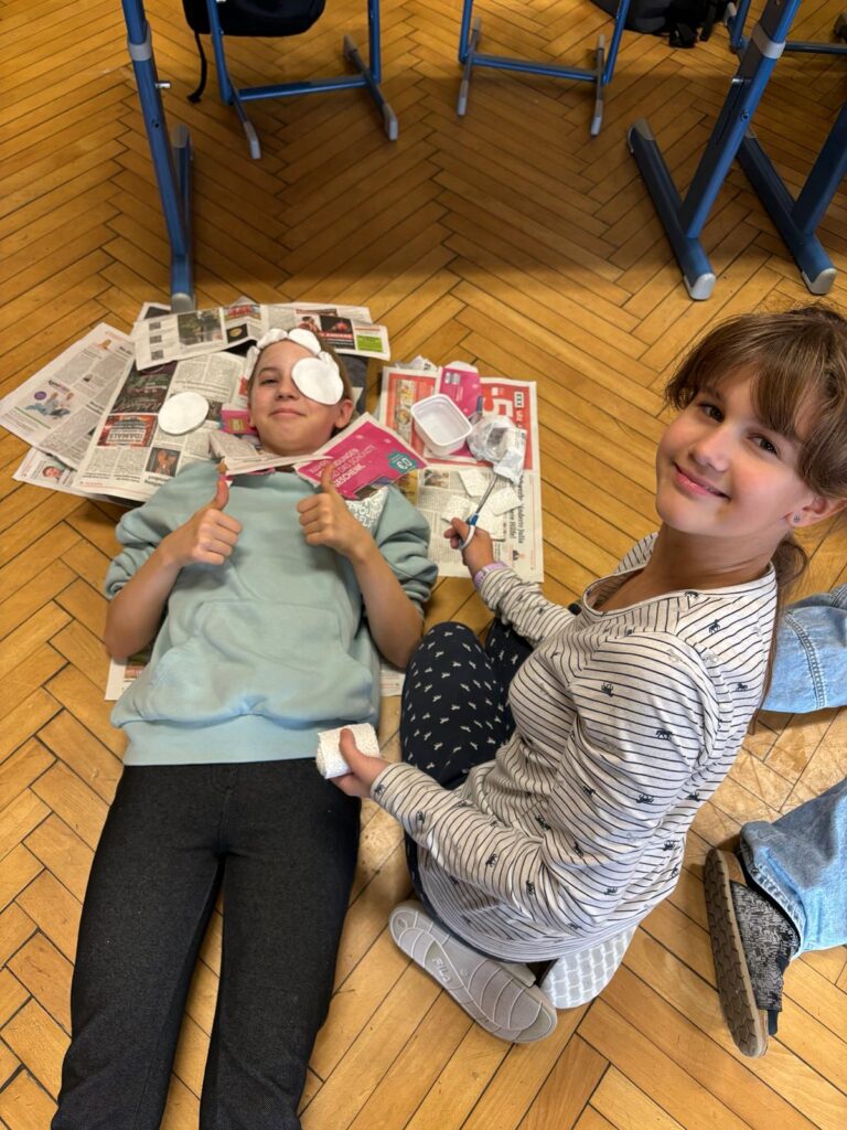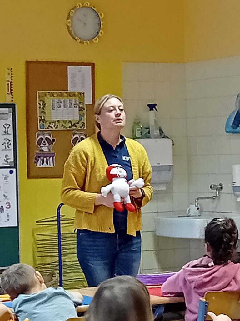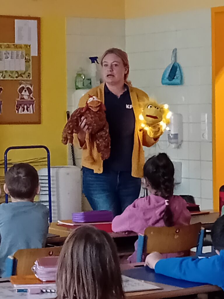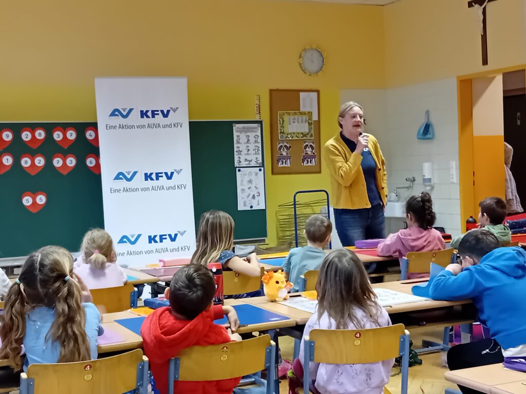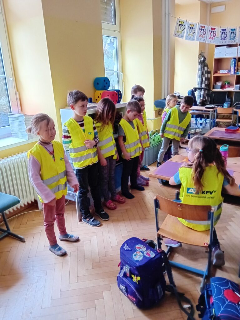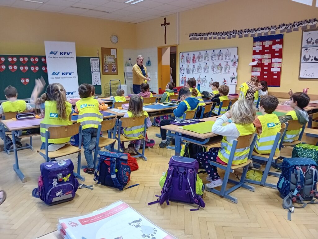 Am 17. Jänner wurde die 1. Klasse von Helmi und seinen Freunden mit der Aktion „Glühwürmchen“ von KFV (Verkehrserziehung) besucht. Wir staunten darüber wie gut man sich sichtbar machen kann.