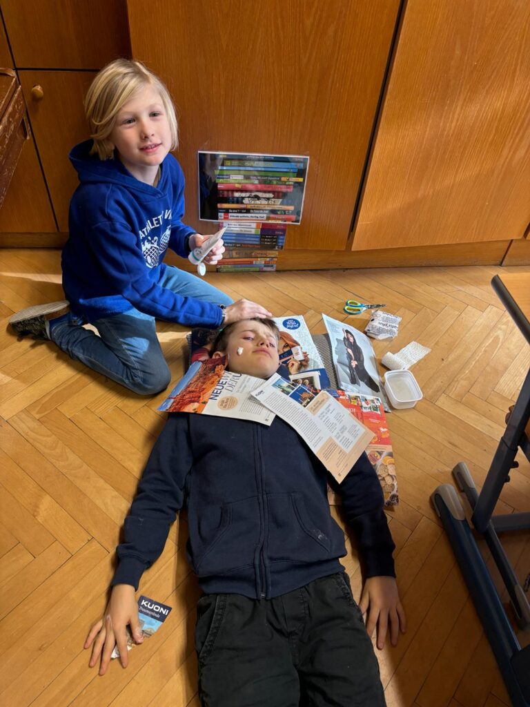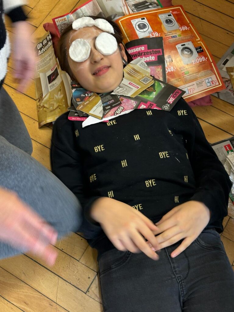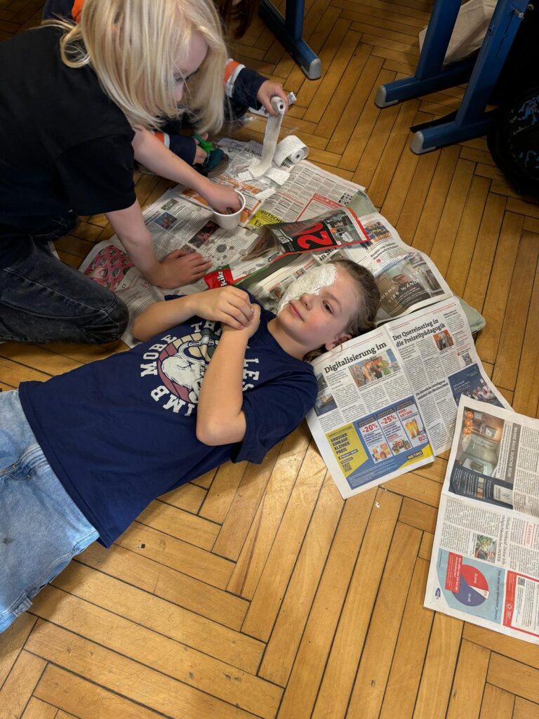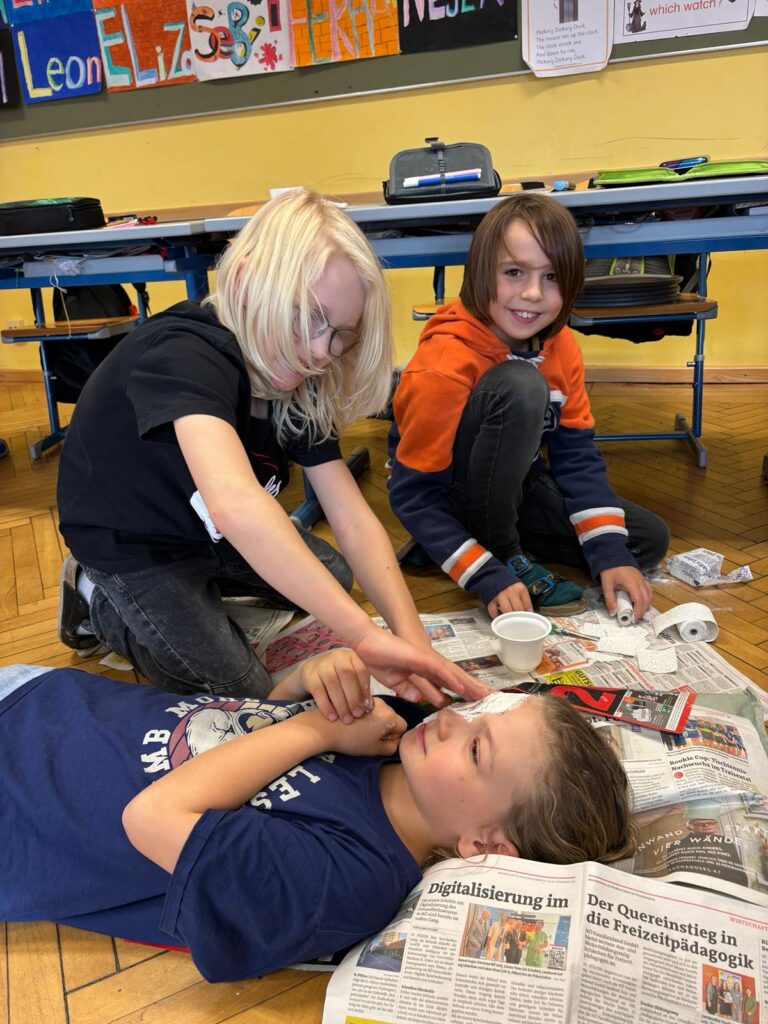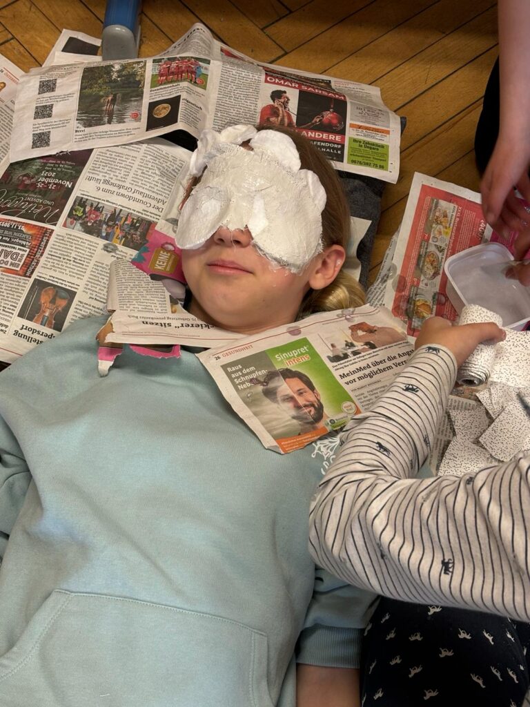 Unser mutigen Viertklässler arbeiteten im Werkunterricht an der Erstellung von Gipsmasken.