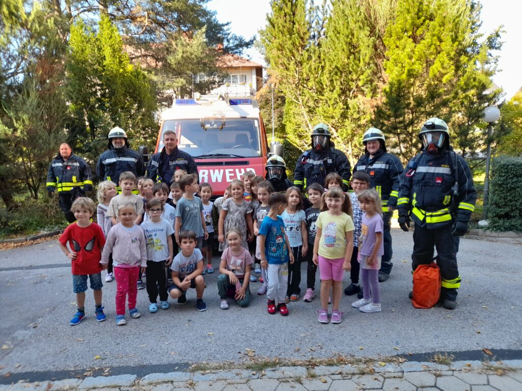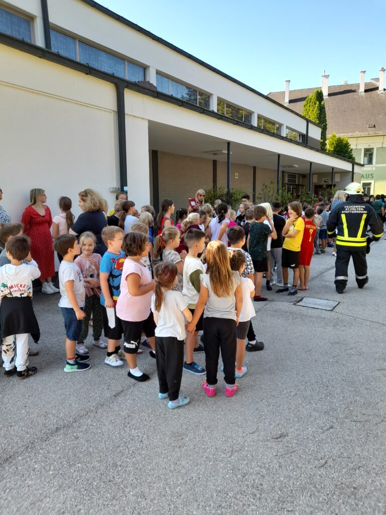 Gleich am Ende der ersten Schulwoche wurden wir getestet, wie gut wir für Notfälle gewappnet sind. Frau Direktor und Feuerwehr waren schwer zufrieden.