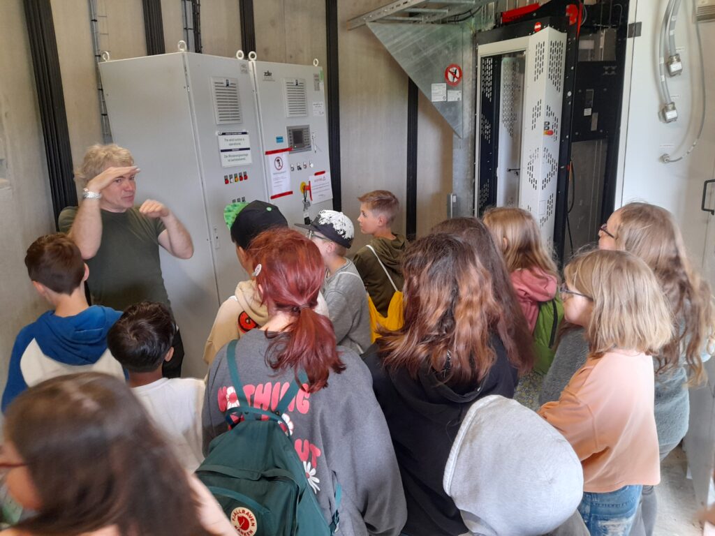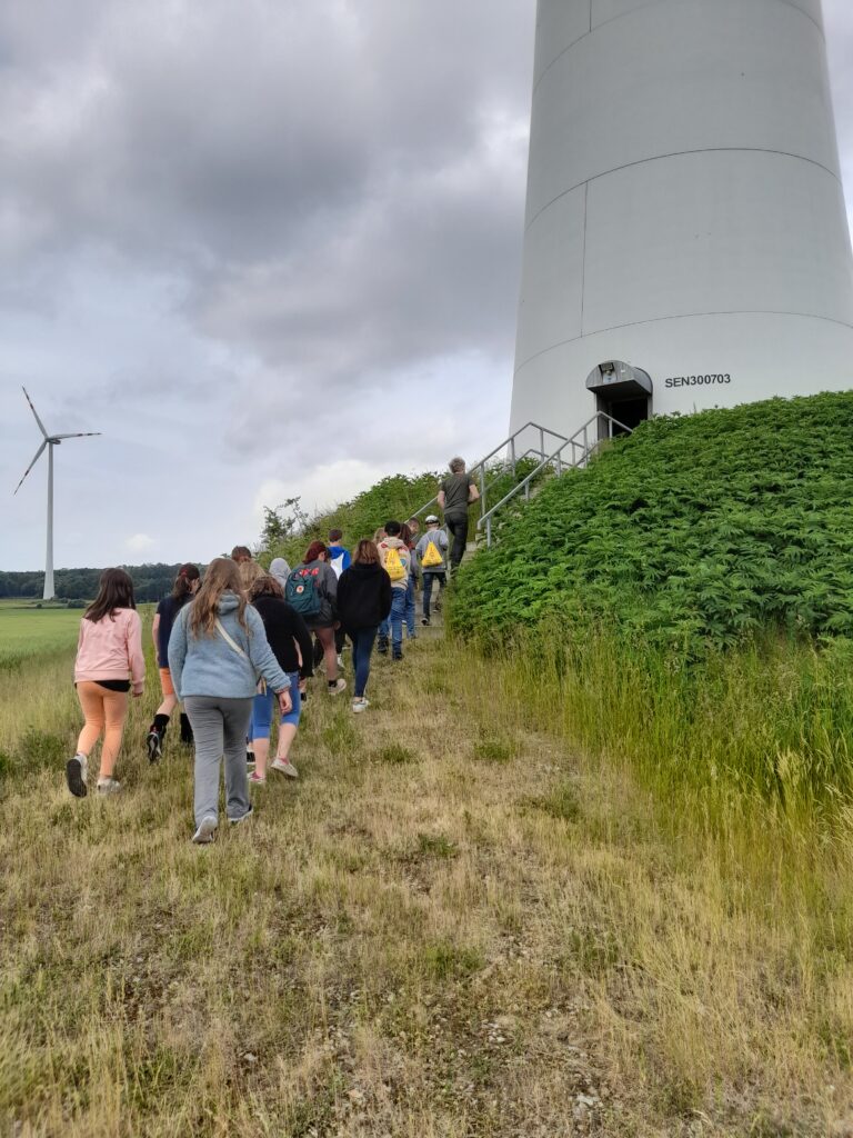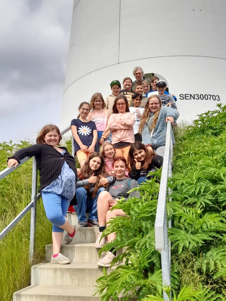 Am 5.Juni durfte die 4.Klasse ihren Gewinn vom Umweltpreis 2023 einlösen. Wir besuchten den Windpark Pottenbrunn, wo uns Stefan Hentsch eine tolle Führung ermöglichte. Beeindruckend, wie klein man sich neben einem Windrad plötzlich fühlt und wie schwindelerregend hoch das Innenleben sich zeigt. Die Kinder waren begeistert.