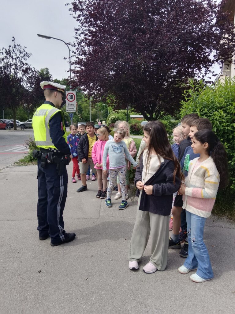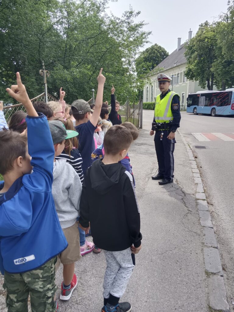 Unsere Erstklässler durften diese Woche mit der Polizei eine Einheit zur Verkehrserziehung – mit Schwerpunkt „Überqueren der Straße“ absolvieren.