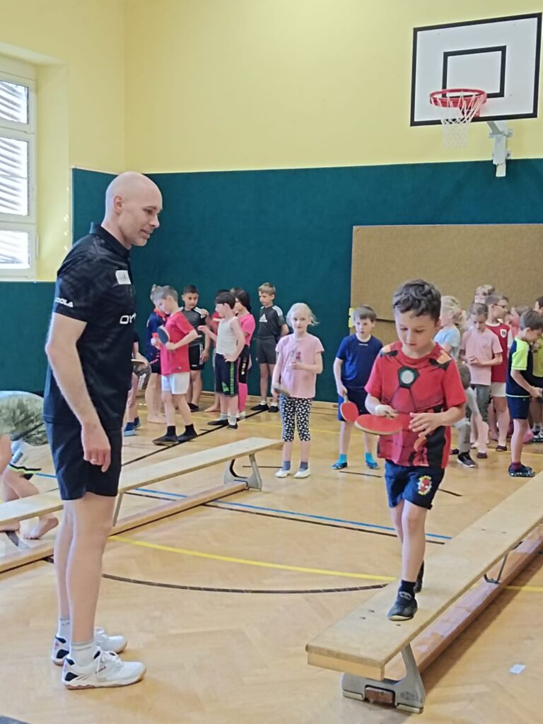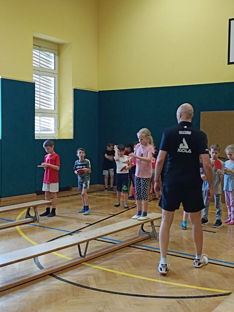 Alle Kinder durften am 31.Mai ein Schnuppertraining mit Tischtennisprofi Daniel Habesohn absolvieren. Gemäß unserem Jahresschwerpunkt Bewegung und Koordination wurde dabei spielerisch der Umgang mit Tischtennisschläger und Ball sowie Staffellauf und co geübt. Alle Kinder hatten viel Spaß und freuten sich über die Autogrammkarte zum Schluss der Stunde.