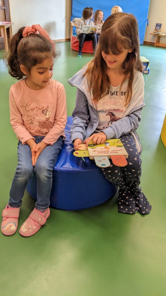 Am 30. März besuchte unsere dritte Klasse den Kindergarten Harland, wo sie den zukünftigen Erstklässlern einen Besuch abstatteten um mit ihnen zu lesen, zu reden und sich kennenzulernen. Das soll beim Neueinstieg im Herbst ein bisschen helfen.