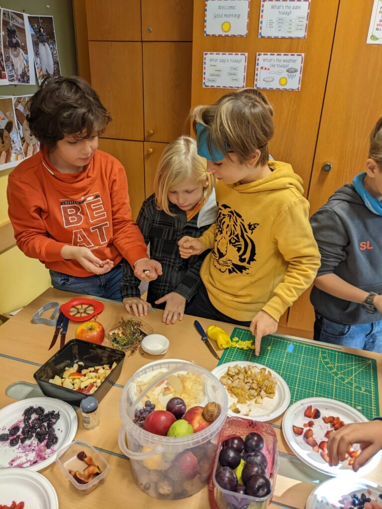 Die dritte Klasse bereitete sich im Unterricht eine gesunde Jause vor.