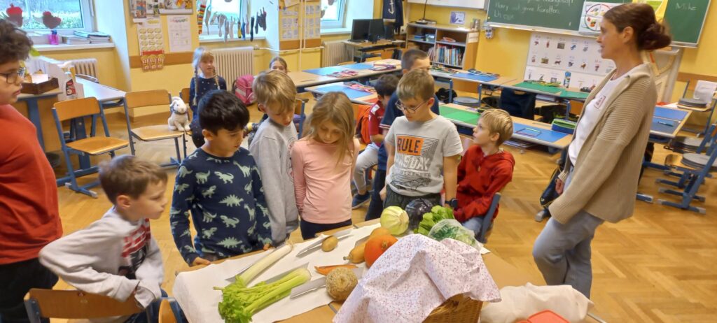 Unsere 2. Klasse bekam im Oktober ein Feinschmeckertraining durch eine Seminarbäuerin um leckeres Gemüse kennenzulernen.